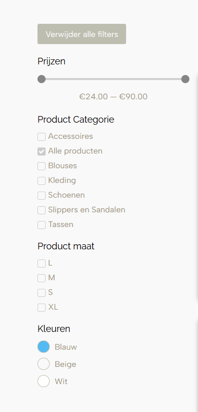 Voeg de eigenschappen van het product toe. Eigenschappen van een product zijn bijvoorbeeld; Kleur, Maat, Gewicht etc. Het koppelen van eigenschappen is belangrijk met name voor het zoeken van de klant in de webshop. Een webshop heeft meestal een Zoekbalk én een Filter in de webshop. Daarom is het belangrijk dat dit juist ingevuld wordt.