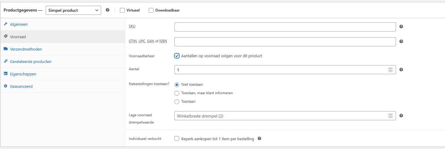 Je kunt een SKU-nummer indien gewenst koppelen aan het product.